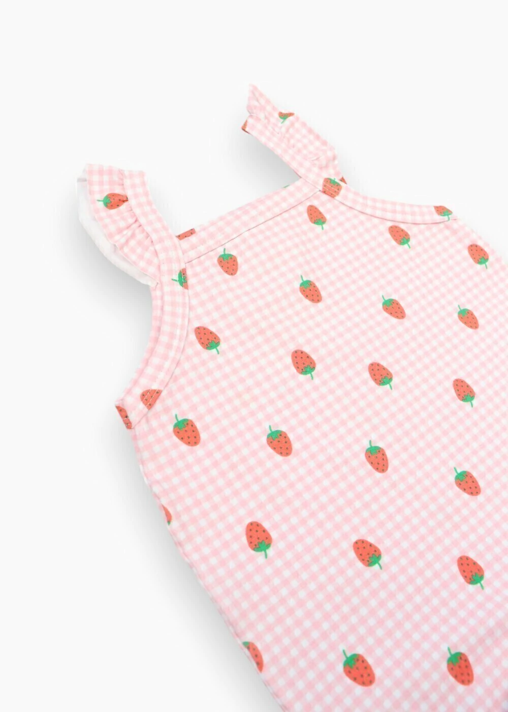 O Banho de Sol Moranguinho é o nosso novo macaquinho de bebê da coleção Moranguinho, com sua estampa fofa e romântica, com aquele gostinho de infância. Confeccionado em cotton, este macacão curto oferece conforto e praticidade para os dias mais frescos. A peça tem um delicado babado na alça com lacinhos em rosa. Uma roupa de bebê perfeita para um gostoso banho de sol, um passeio no parque ou um fim de tarde de calor.