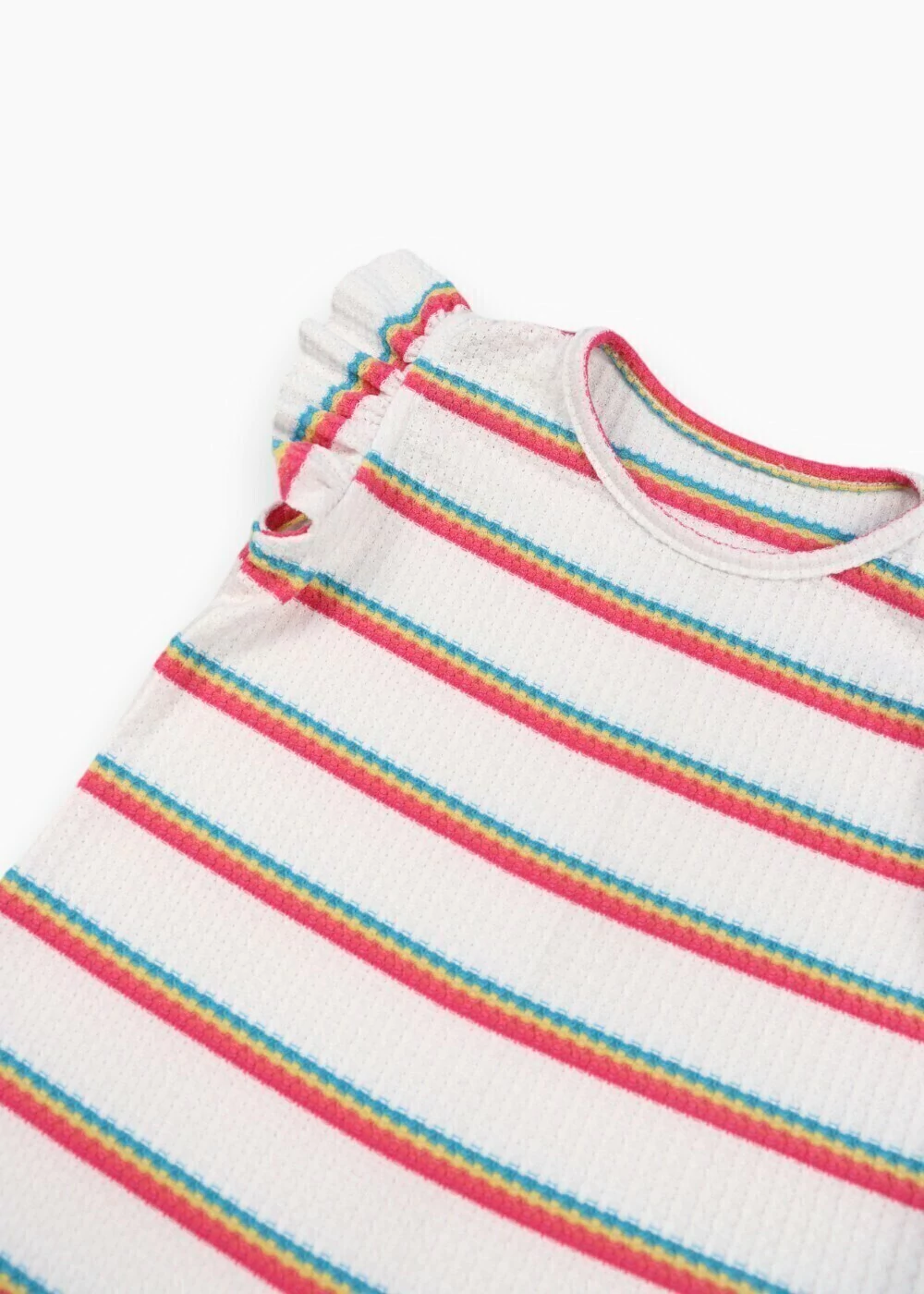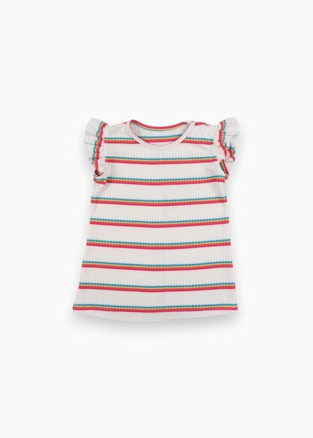 • Características: Blusa de menina em malha tricô listrada com babados nas mangas.