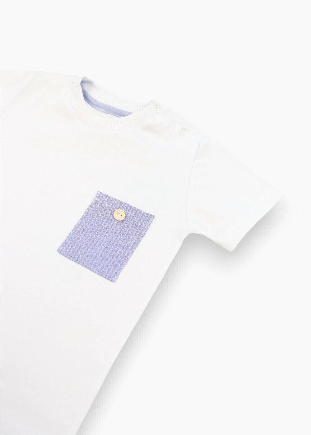 A Camiseta Branca Menino Bolsinho é aquela peça coringa que todo menino precisa ter. Confeccionada em meia malha 100% algodão, ela é macia, respirável e perfeita para garantir o conforto durante o dia todo. O bolsinho em chambray com botão traz um detalhe charmoso e moderno, fácil de combinar com outras peças do guarda-roupa. Versátil e prática, essa camiseta é ideal tanto para os momentos de brincadeira quanto para ocasiões mais casuais.