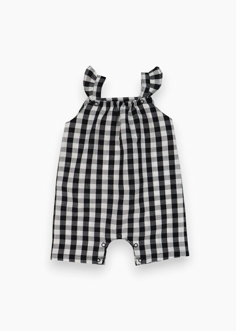 A Jardineira Bebê Julia traz o encanto das flores em uma peça leve e confortável. Feita em tecido 100% algodão, com um xadrez em preto e branco, atemporal, cria um look cheio de personalidade para as meninas. As alcinhas com babado complementam o charme da peça, enquanto a modelagem soltinha proporciona liberdade nos movimentos.