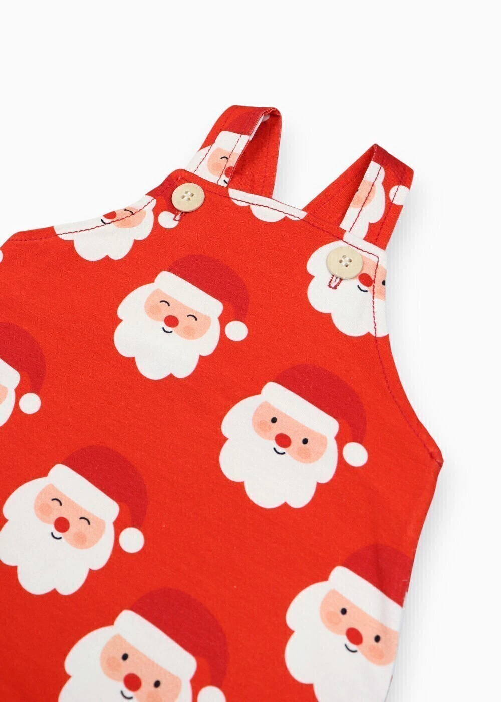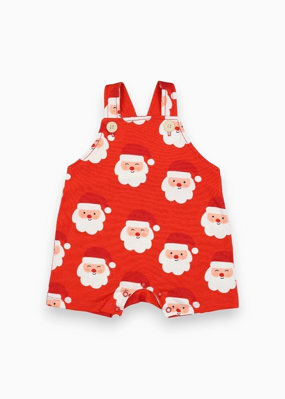 • Características: Jardineira de bebê para o Natal em cotton vermelho com estampa de Papai Noel, alças com botão e abertura entrepernas com pressão.