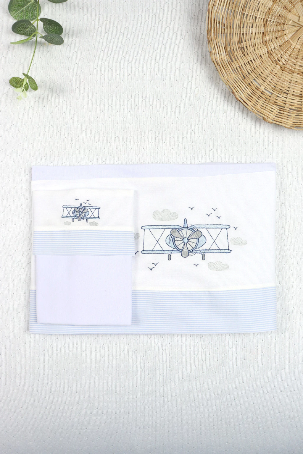 jogo lencol carrinho 3 pecas aviao R$97,10