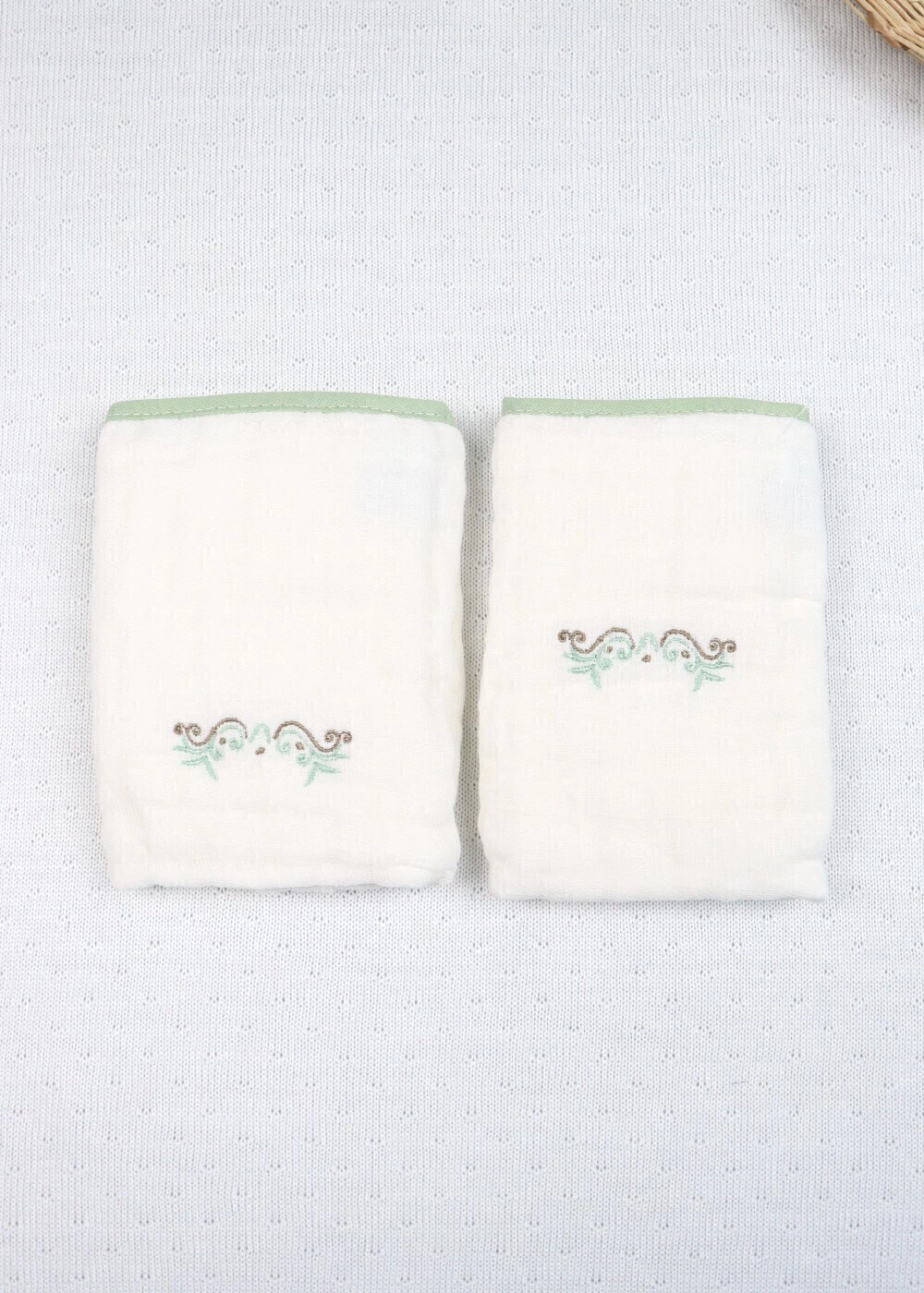 kit 2 panos de boca bebe soft verde bordado