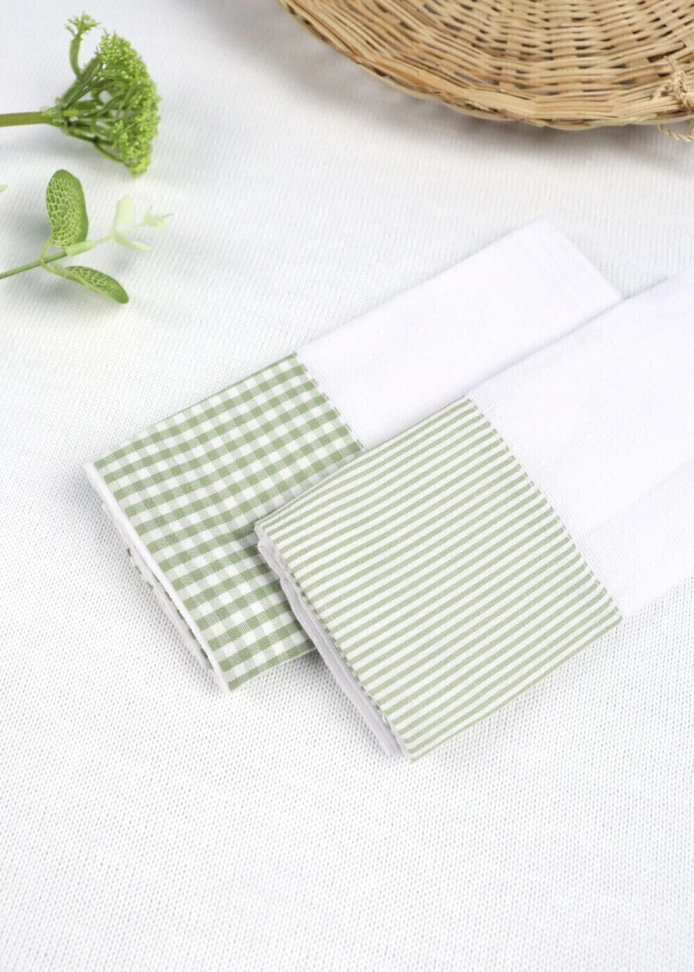 Os paninhos de boca são peças indispensáveis no enxoval do bebê. Confeccionado em fralda 100% algodão com toque acetinado, é delicado e muito útil para o dia a dia. Ideal para limpar a boquinha após a amamentação, limpar ou secar as mãos do bebê, e também é prático para levar em passeios. Nosso kit conta com duas fraldas com barrado em tricoline e estampas encantadoras que combinam entre si.