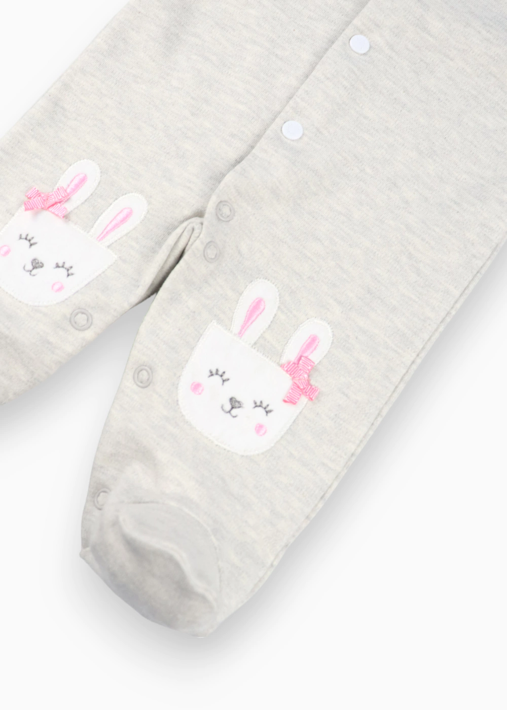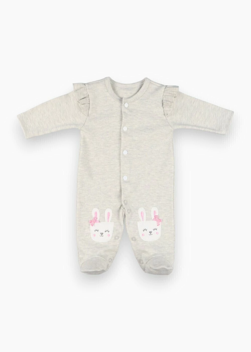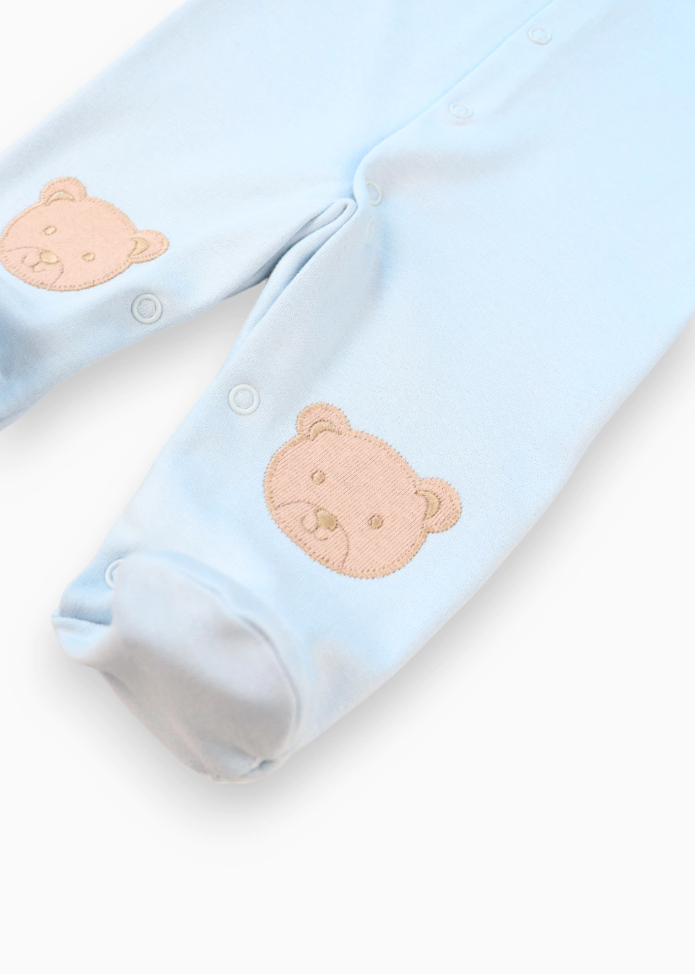 Este macacão para bebê é confeccionado em suedine de fio egípcio, garantindo suavidade e conforto. Disponível em duas versões: mescla com bordado de coelhinha e asinhas nos ombros, e azul lake com bordado de ursinho nos joelhos. Os bordados são feitos à mão, oferecendo um charme especial. Com abertura frontal prática, é perfeito para quem ama ver seu bebê super fofo e à vontade. Este macacão comprido mantém seu bebê quentinho e encantador.