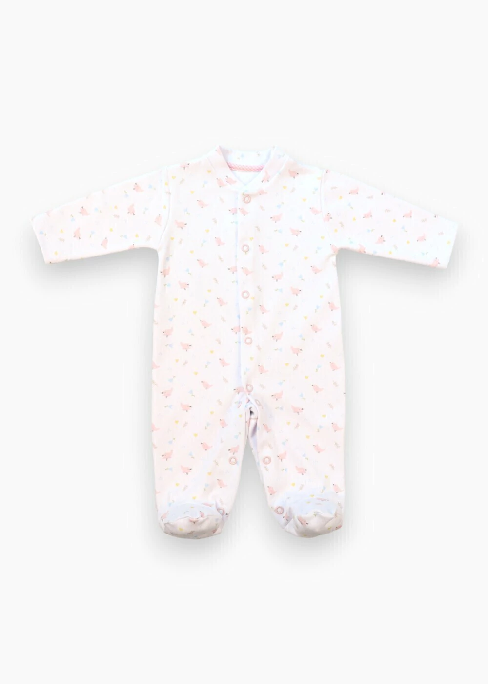Conheça o Macacão Bebê Suedine Birdie, feito com algodão de fio egípcio, perfeito para o enxoval do seu bebê. Em uma estampa com desenho delicado em aquarela com ilustrações de passarinhos rosa, raminhos de flor e corações. A abertura frontal e no entrepernas proporciona praticidade na hora da troca. Confeccionado em suedine fio tinto, 100% algodão, este macacão oferece um toque macio e suave, garantindo o conforto do seu recém-nascido em qualquer momento do dia.