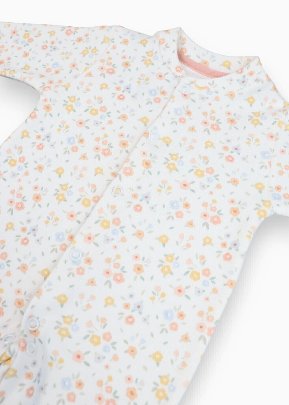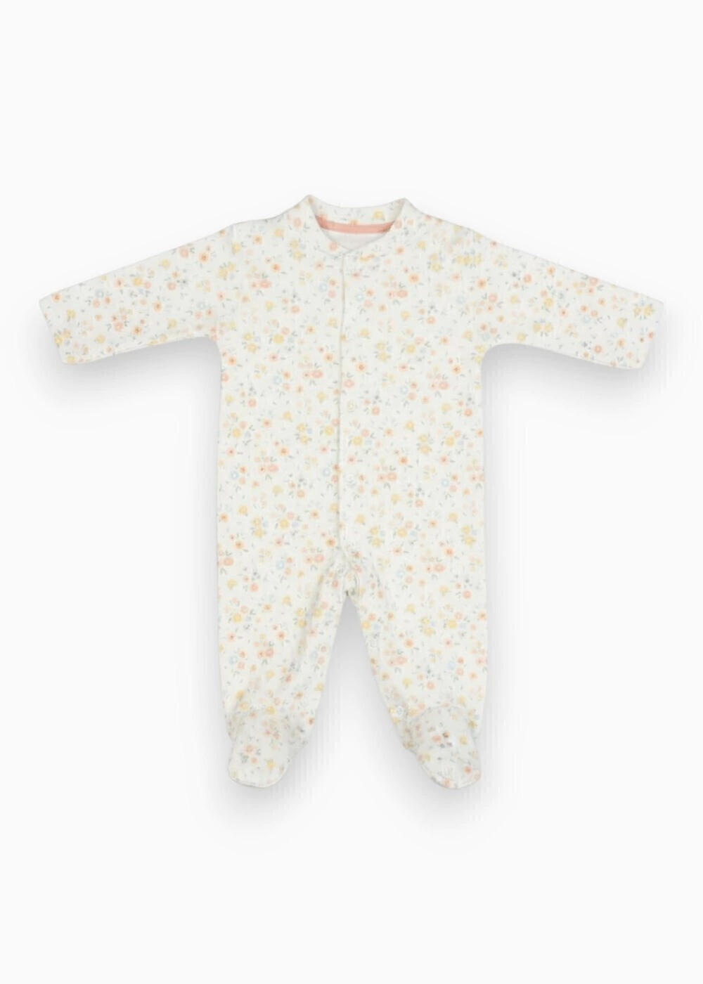Inspirado na leveza da primavera, o macacão comprido é feito em suedine 100% algodão de fio egípcio, com toque macio e caimento que respeita os movimentos do bebê. A estampa floral delicada traz tons suaves de rosa, amarelo e azul, em harmonia com o fundo branco. A abertura frontal com botões facilita o vestir sem interferir na estética leve da peça. Uma roupa de bebê pensada nos detalhes.