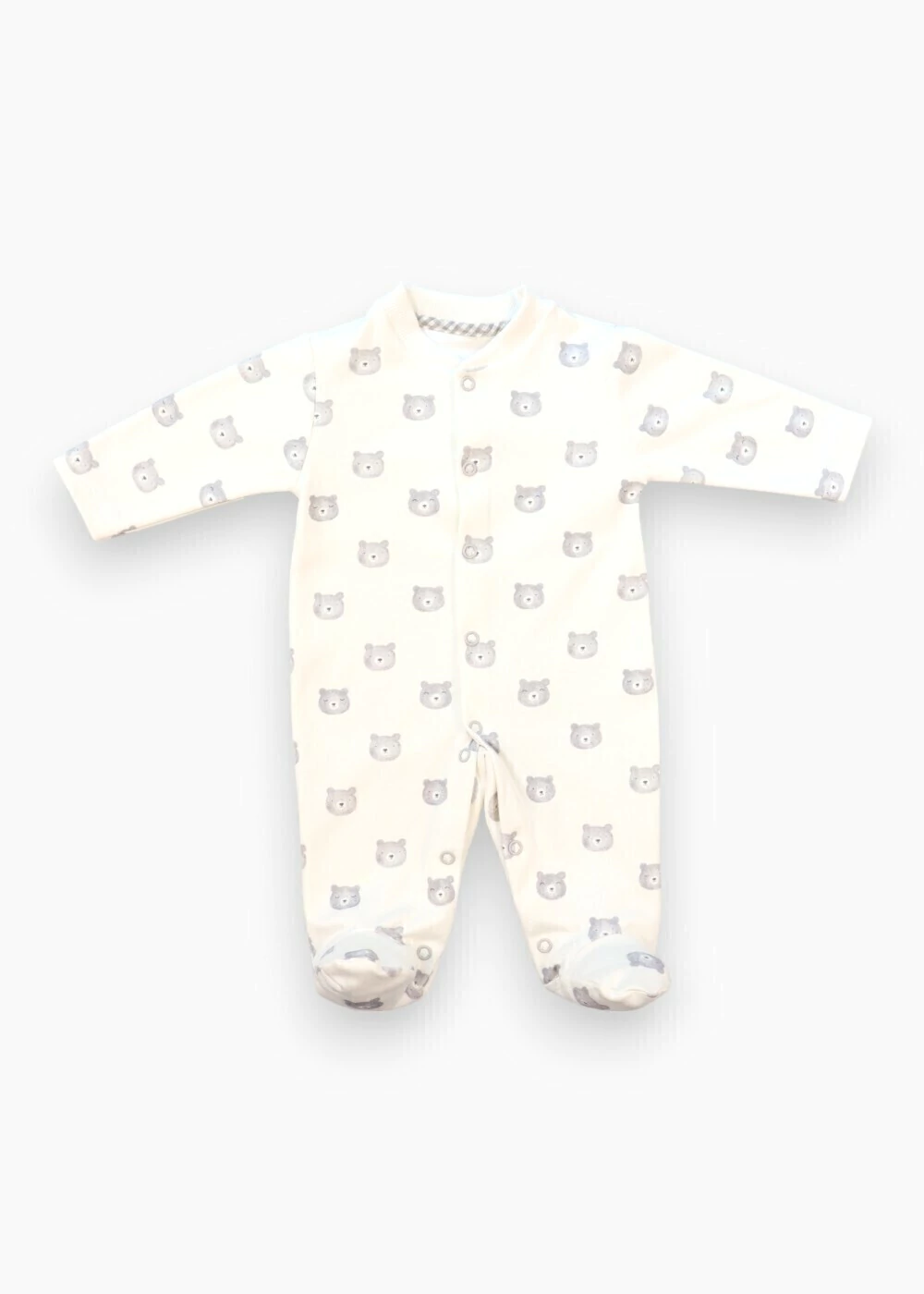 Conheça o Macacão Bebê Suedine Ursitos, feito com algodão de fio egípcio, perfeito para o enxoval do seu bebê. A estampa exclusiva de ursinhos aquarelados em cinza sobre fundo off-white é delicada e unissex, adequada para meninos e meninas. A abertura frontal e no entrepernas proporciona praticidade na hora da troca. Confeccionado em suedine fio tinto, 100% algodão, este macacão oferece um toque macio e suave, garantindo o conforto do seu recém-nascido em qualquer momento do dia.