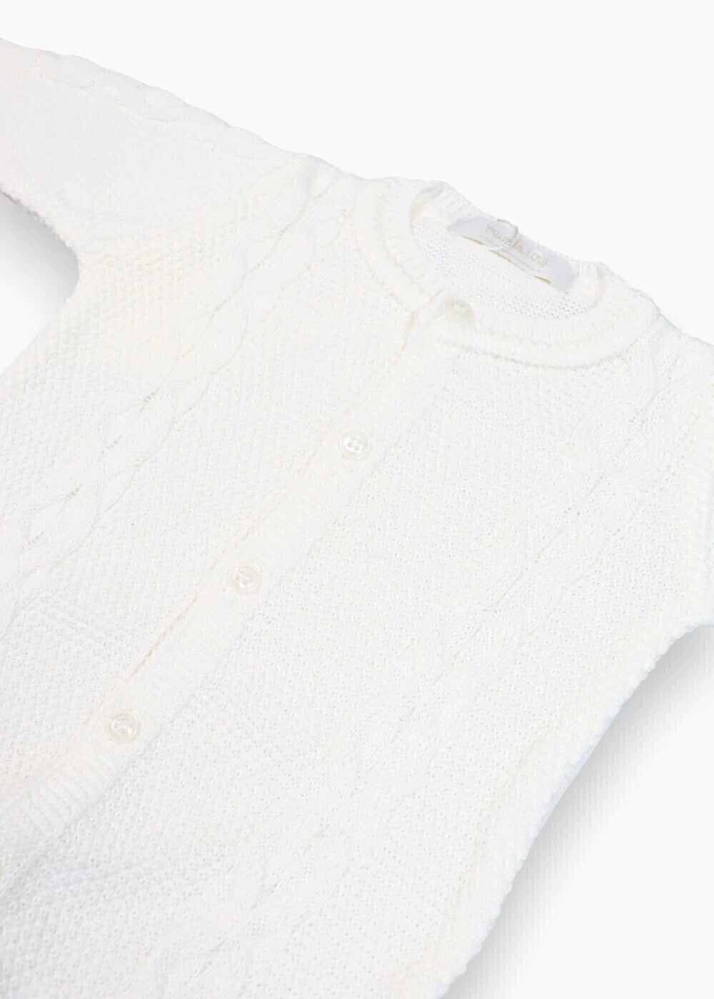 O macacão em tricô é aquela peça especial para a primeira roupinha do bebê. Feito para trazer aconchego desde os primeiros momentos, tem um toque delicado e confortável, ideal para a saída de maternidade. Clássico e atemporal, é uma escolha que marca esse dia único com carinho. Para completar o enxoval, sugerimos combinar com uma manta e um body pagão, criando um conjunto especial e cheio de charme.