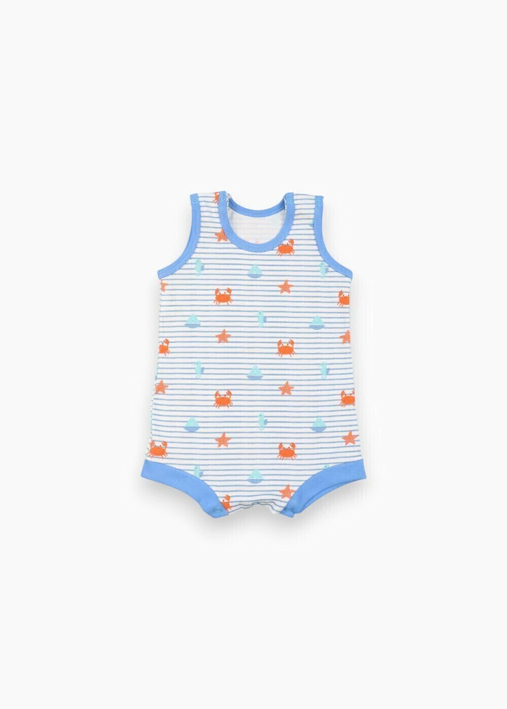• Características: Macacão curto de bebê com modelagem regata. Abertura no entrepernas. Parte da coleção Prainha.