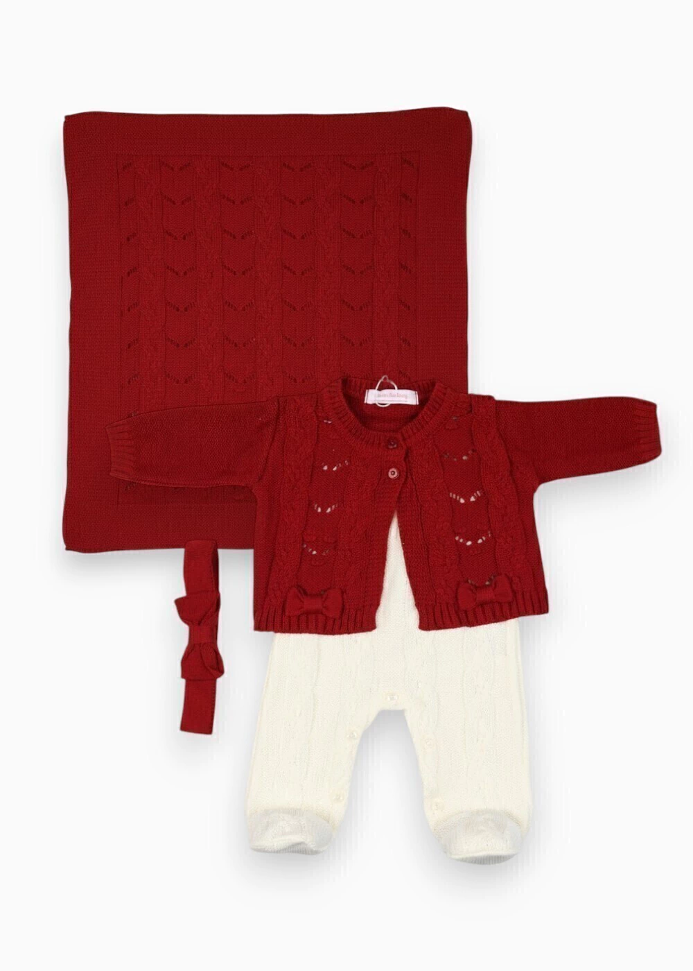 • Características: Conjunto com casaquinho, jardineira e manta.