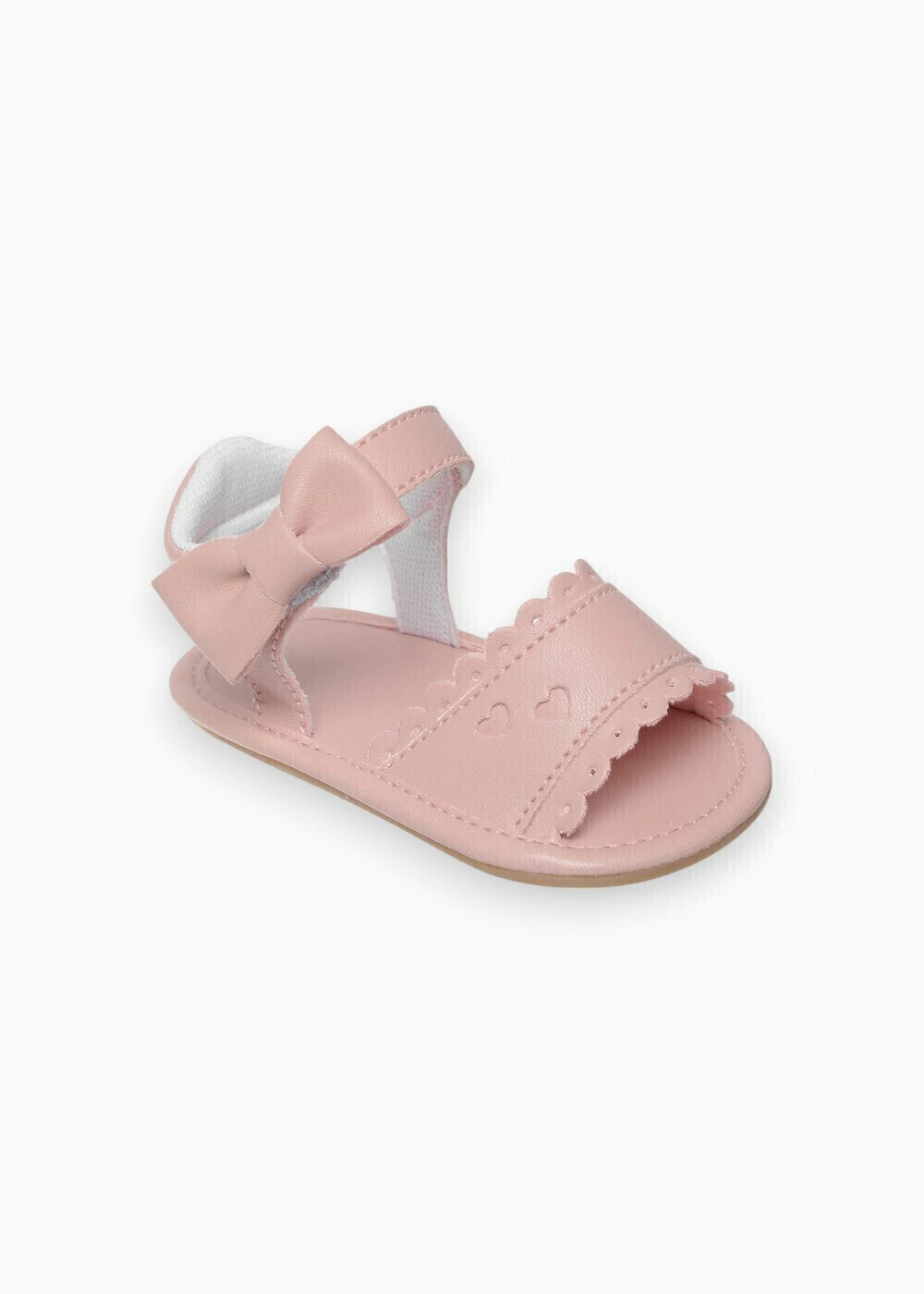 • Características: Sandália de bebê rosa candy com laço lateral, fechamento em velcro, recortes decorativos em formato de coração e palmilha macia com acabamento maleável.