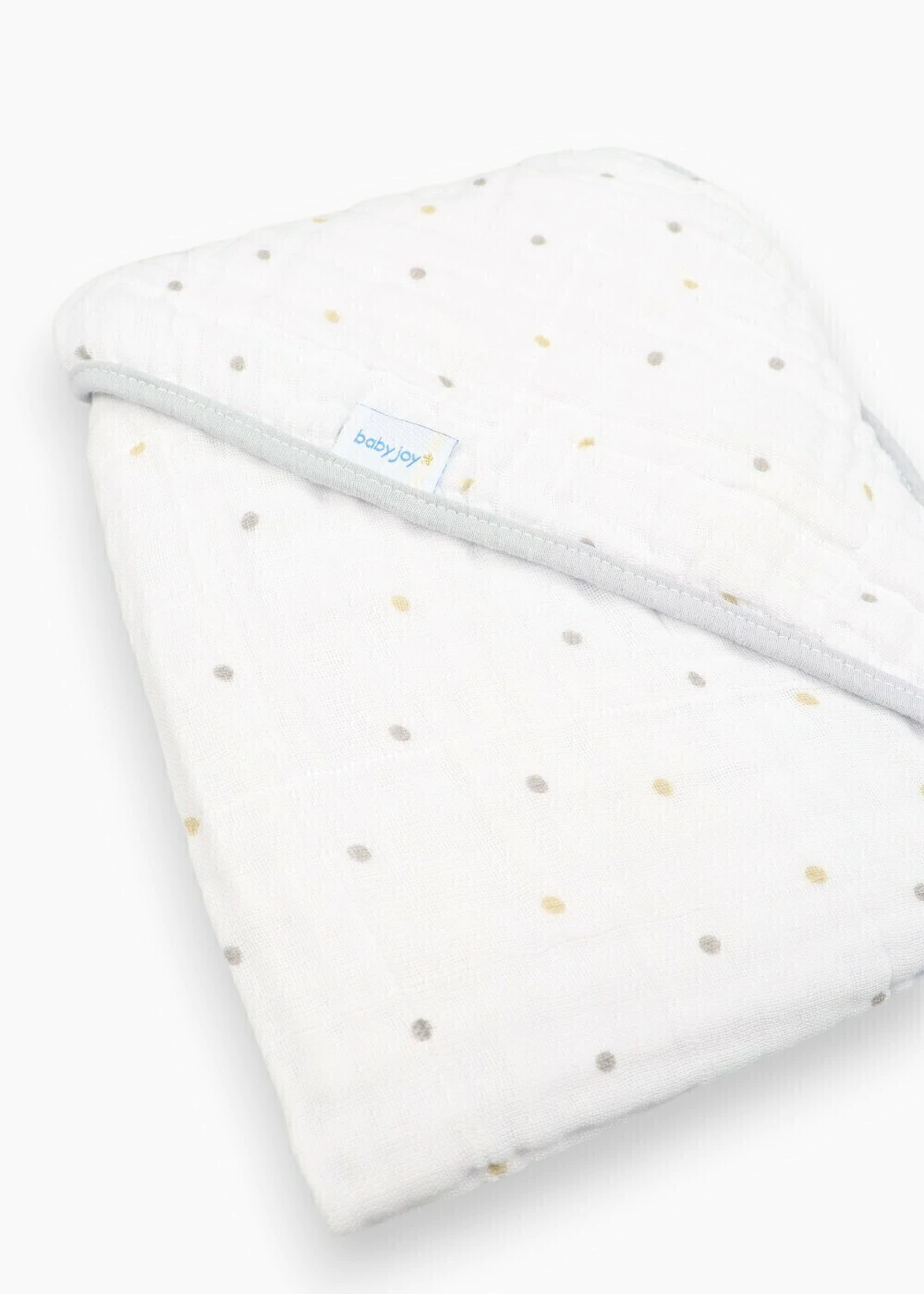 • Características: Toalha de banho para bebê com capuz e forrada com fralda. Tamanho: 80x80cm. Marca: Baby joy.
