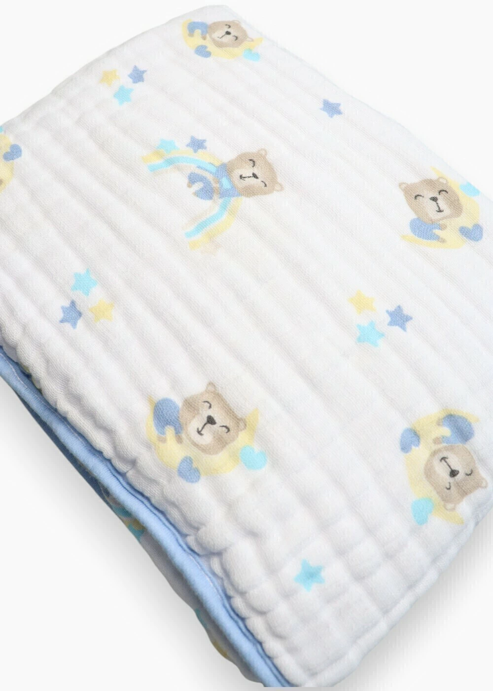 Toalha soft bordada com capuz no centro, confeccionada em algodão 100% e três camadas acolhedoras. Com 75x90 cm, envolve o bebê com delicadeza depois do banho, mantendo a pele sequinha e macia - o abraço perfeito para os primeiros momentos de cuidado.