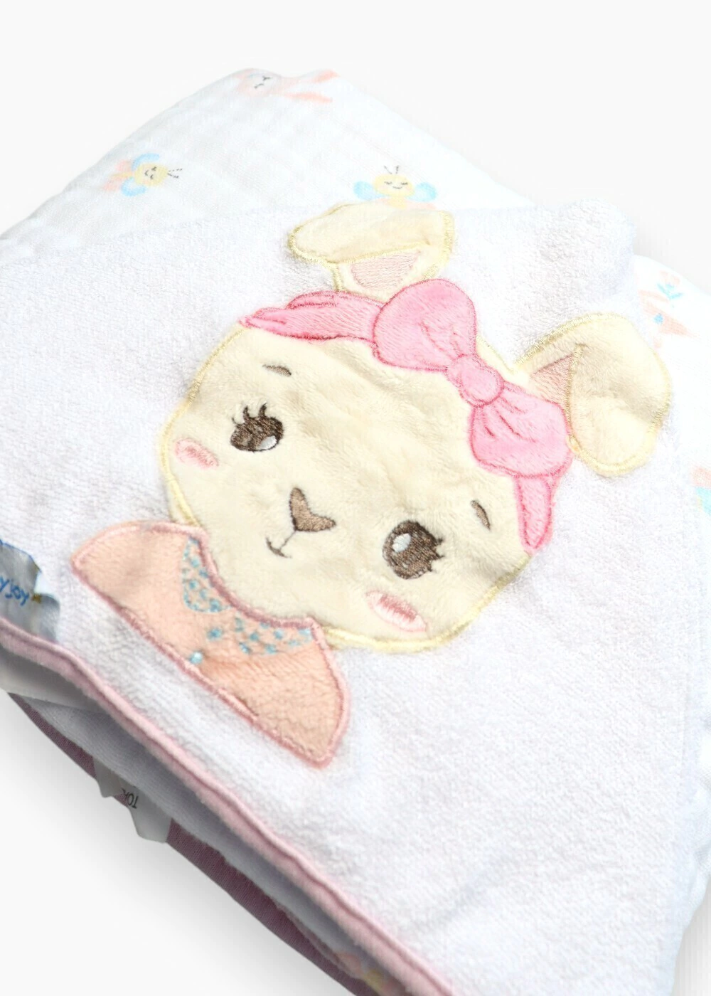 Toalha soft bordada com capuz no centro, confeccionada em algodão 100% e três camadas acolhedoras. Com 75x90 cm, envolve o bebê com delicadeza depois do banho, mantendo a pele sequinha e macia - o abraço perfeito para os primeiros momentos de cuidado.