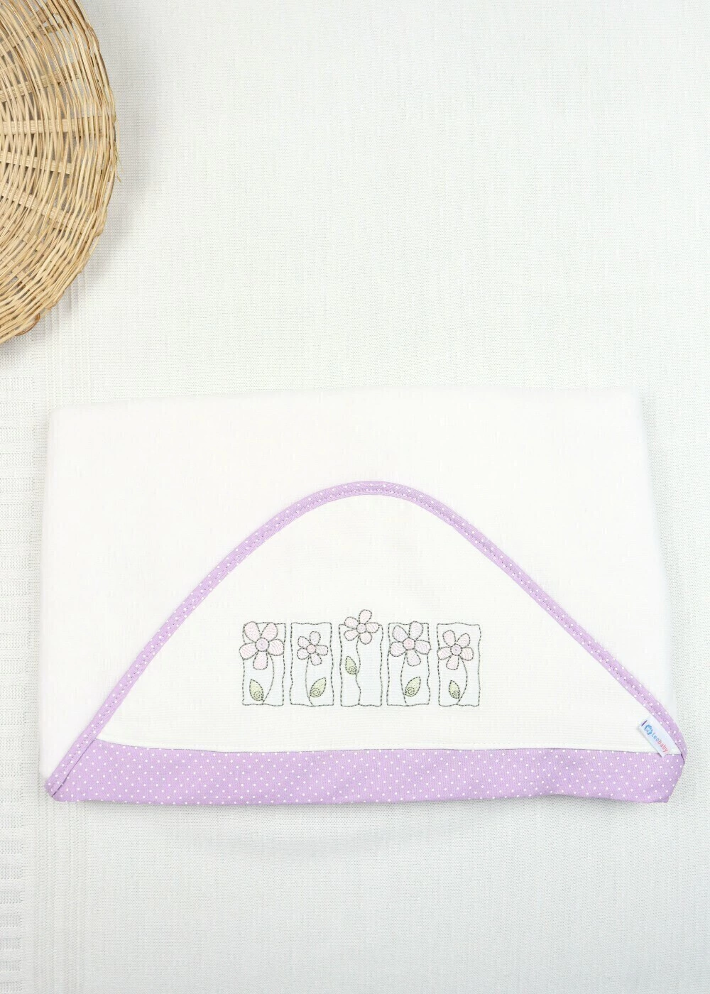 toalha de banho com capuz bebe jardim lilas R$119,60